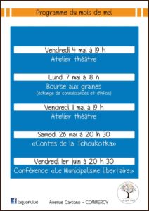 4 mai 2018 laquonvive Programme 19 Comments Programme des activités du mois de mai proposées à Là Qu’on Vive :