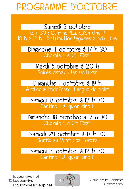 PROGRAMME D’OCTOBRE