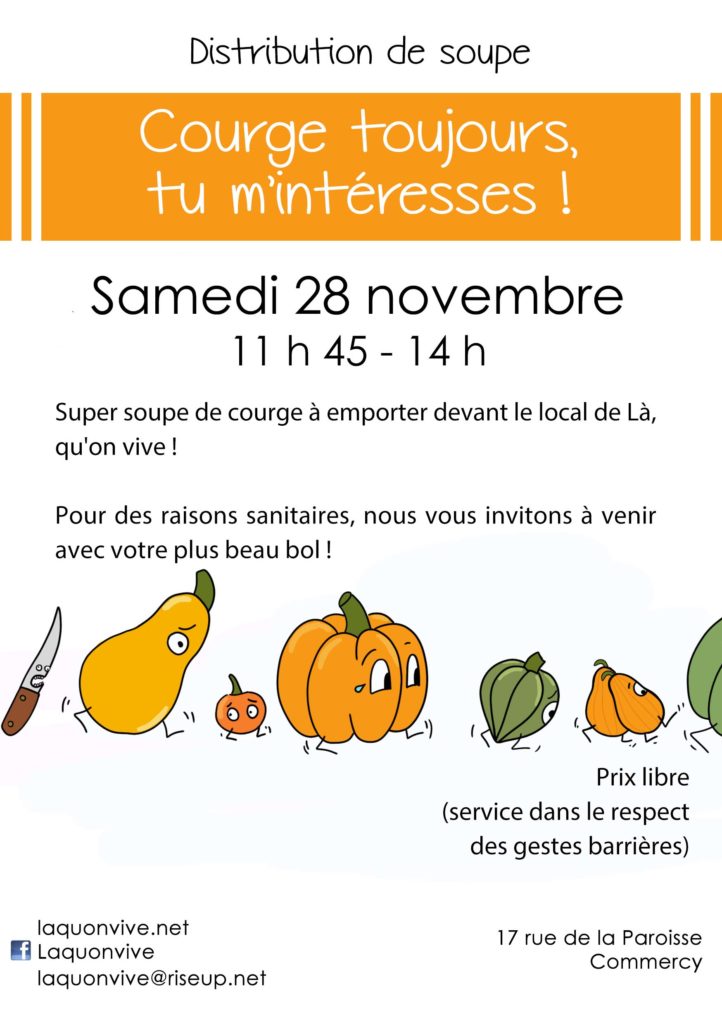 Samedi 28 novembre, Là qu’on Vive organise une grande soupe devant son local : 17 rue de la paroisse à Commercy !
