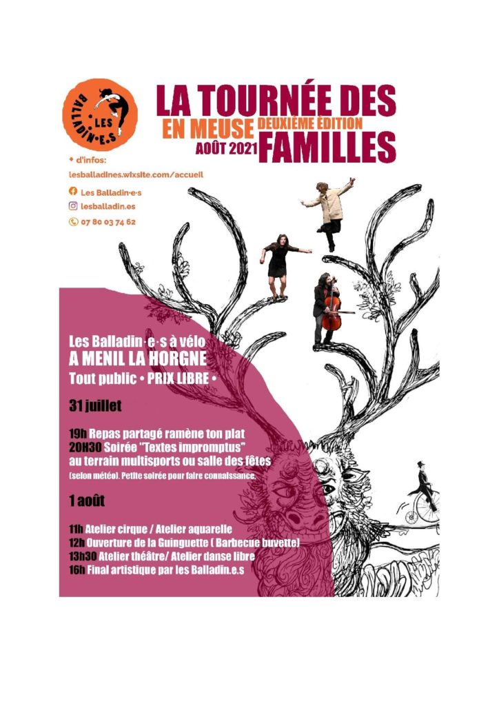 – Ce samedi et dimanche, la troupe de cyclistes et artistes « les Balladin.e.s » s’arrête à Ménil-la-Horgne et nous invite à participer à des ateliers, jeux et autres réjouissances festives !