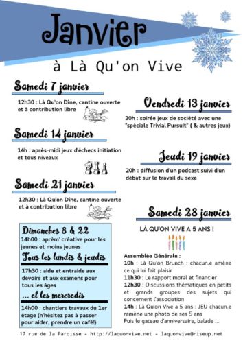 Et un rappel : la fabuleuse cantine fait son retour ce samedi 7 janvier à partir de 12h30 !