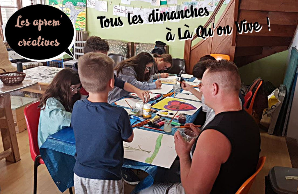 Un dimanche sur deux, à 14h à Là Qu’on Vive les aprèm’ créatives accueillent les jeunes de Commercy autour de diverses activités co-animées avec ces derniers : peinture, cuisine, argile, jeux, discussions, bricolage,… !