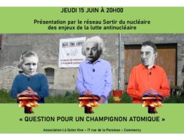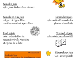 Ce jeudi 15 juin : le « Réseau Sortir du Nucléaire » sera présent dans nos locaux pour animer des ateliers, des jeux et des discussions sur...