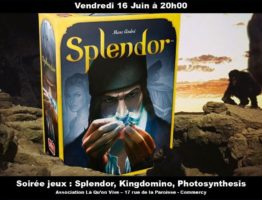 Ce vendredi 16 juin à 20h, trois jeux de société seront à l’honneur : – Splendor, jeu de gestion de ressources à la Renaissance !...