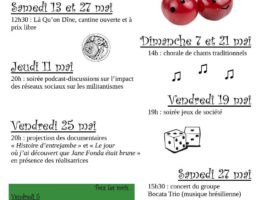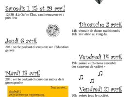 PROGRAMME FÉVRIER Le voilà, ENFIN ! Ateliers, discussions, jeux, repas partagés… En février, c’est la fête à Là Qu’on Vive ! IMPORTANT : – L’après-midi jeu de...